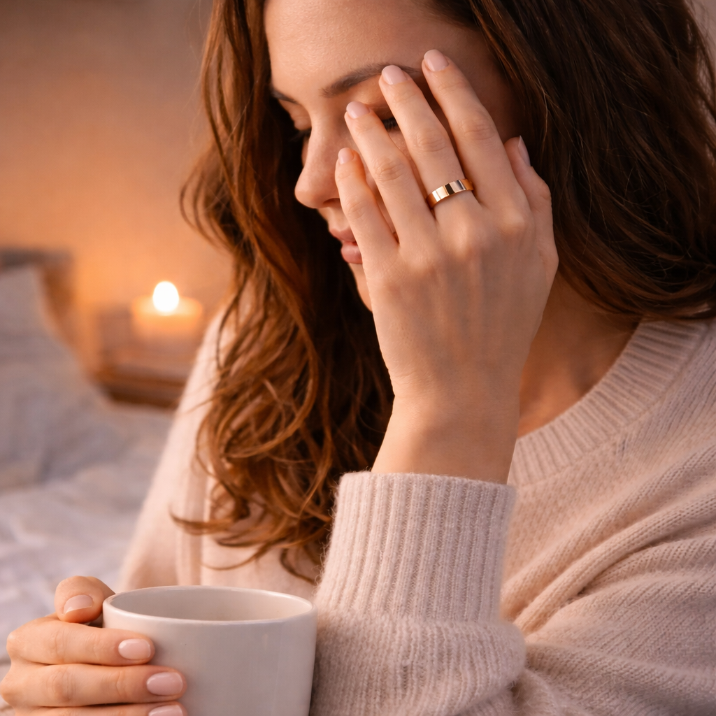 Der RuheRing begleitet dich besonders in ruhigen Momenten des Tages und am Abend –leise, unauffällig und ohne Aufwand.